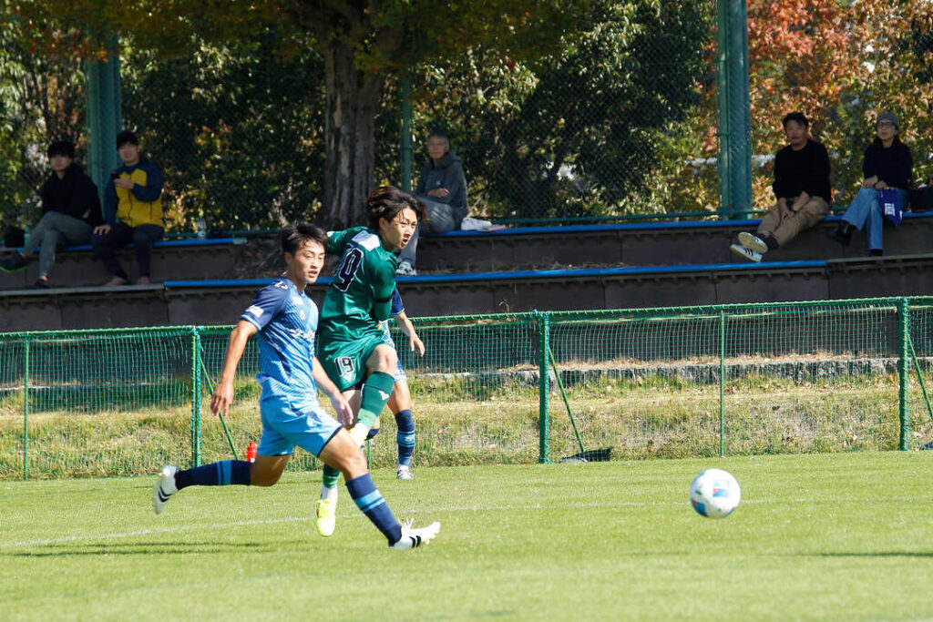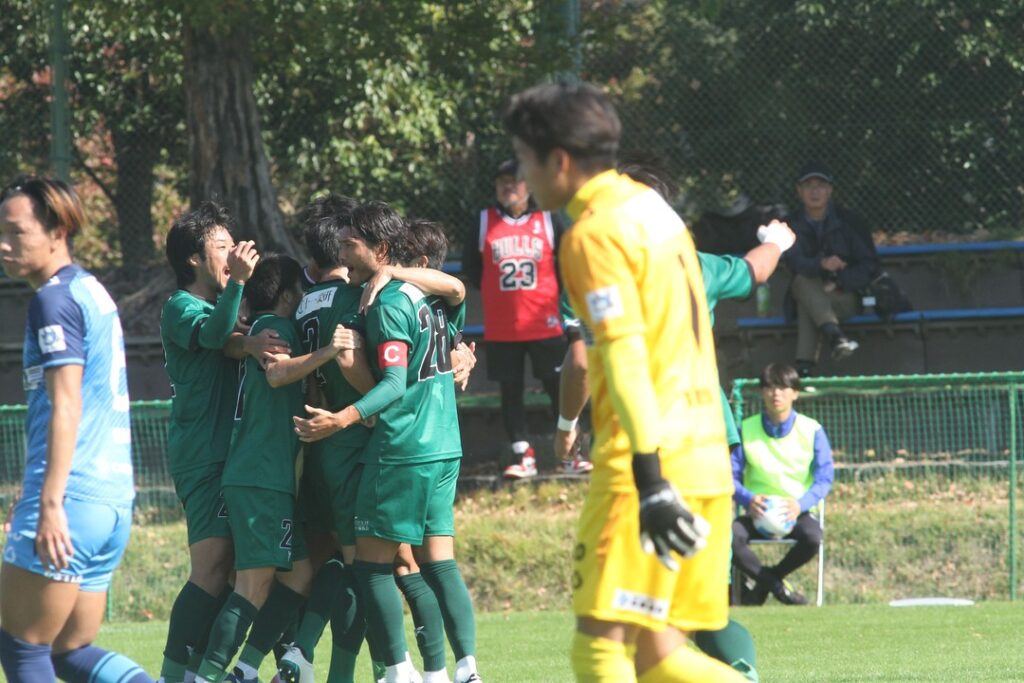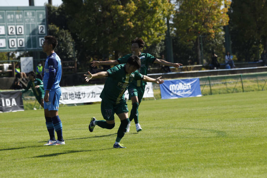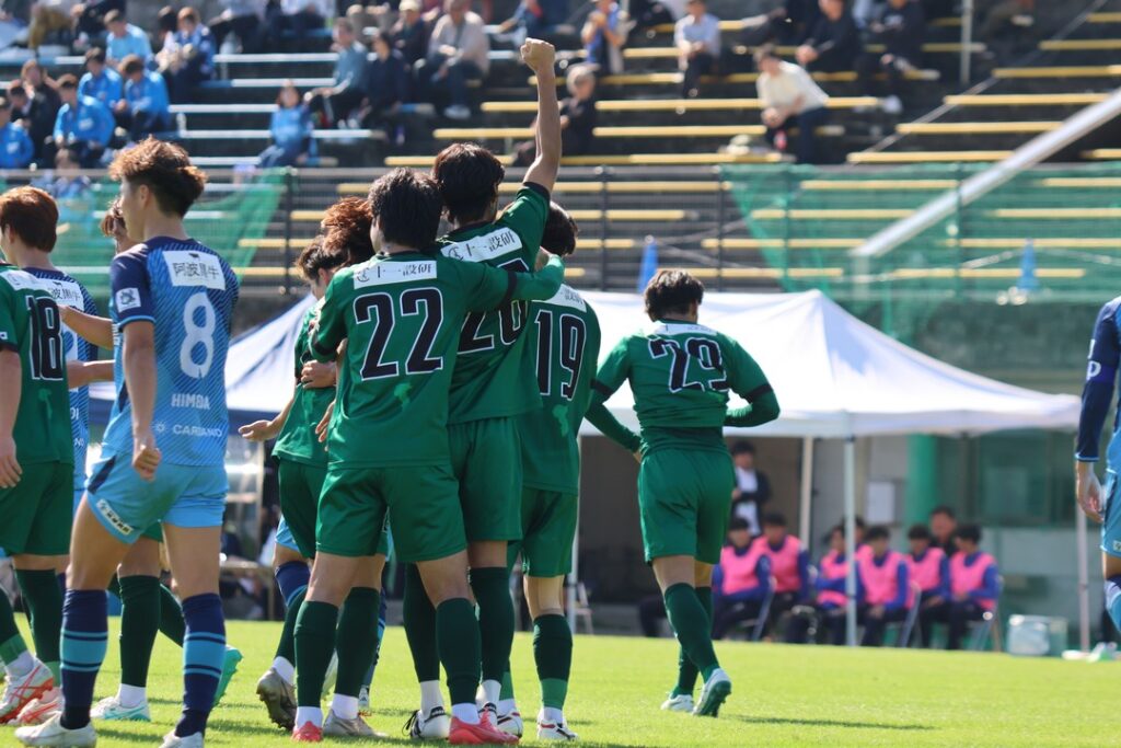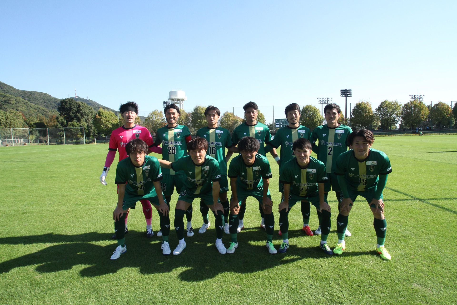 全国社会人サッカー選手権大会を勝ち進み、ついにJFL昇格をかけた最後の大会・全国地域サッカーチャンピオンズリーグ2025が開幕。グループC・高知会場になったチームは初戦にFC徳島との一戦に挑む。高い位置で粘り強いプレスからチャンスを量産し、立ち上がりからセットプレーを中心に積極的に攻め込んでいくが、なかなか得点には結び付かなかった。均衡を破ったのは前半33分、コーナーキックを獲得しキッカーNo.15水野のボールにNo.2藤嵜が頭で合わせる!待望の先制点に勢いついたチームは続く前半37分、相手陣地でボールを奪ったNo.19橋本がそのままシュート!前半に2点のリードを奪いハーフタイムへ。後半に入っても勢いは変わらず、後半9分にNo.10沼のクロスボールにNo.27郡司がヘディングシュート!3点目を奪うと、後半30分には途中交代No.23後藤のロングボールにNo.28篠原が頭で合わせて4点目を挙げる!その後押し込まれる場面もあったものの、後半アディショナルタイムにNo.23後藤のシュートが突き刺さり5点目を奪い試合終了。大量得点で初戦を勝利で飾った。ご声援ありがとうございました!
