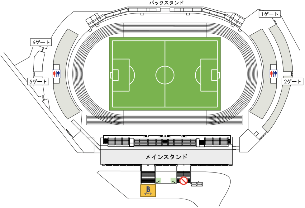 ※バックスタンド、ゴール裏スタンドでのご観戦はできません。