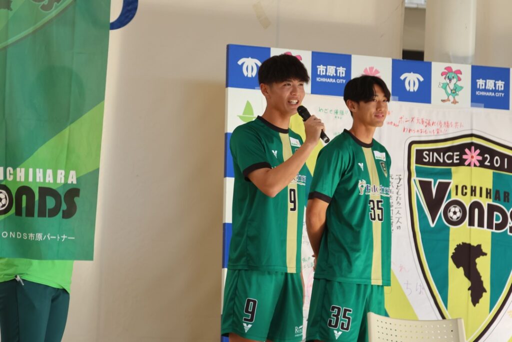 続いてVONDS市原FCよりNo.9本吉利安選手、No.35佐久間太一選手が登壇。まもなく開幕を控える全国地域サッカーチャンピオンズリーグ2025を前に、本吉選手からは「全員で盛り上げてここでJFL昇格したい」、佐久間選手からは「みんなの応援が力になります、最後まで戦います。」と意気込みを語りました。終了後にはサイン会を開催し、ご参加いただいた皆さまとの交流を楽しみました。