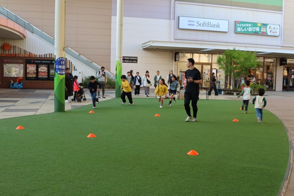 また合間にはブース運営を実施し、午前中にはサッカーを楽しみ、午後からはVarious GYM様による親子運動教室を開催しました。