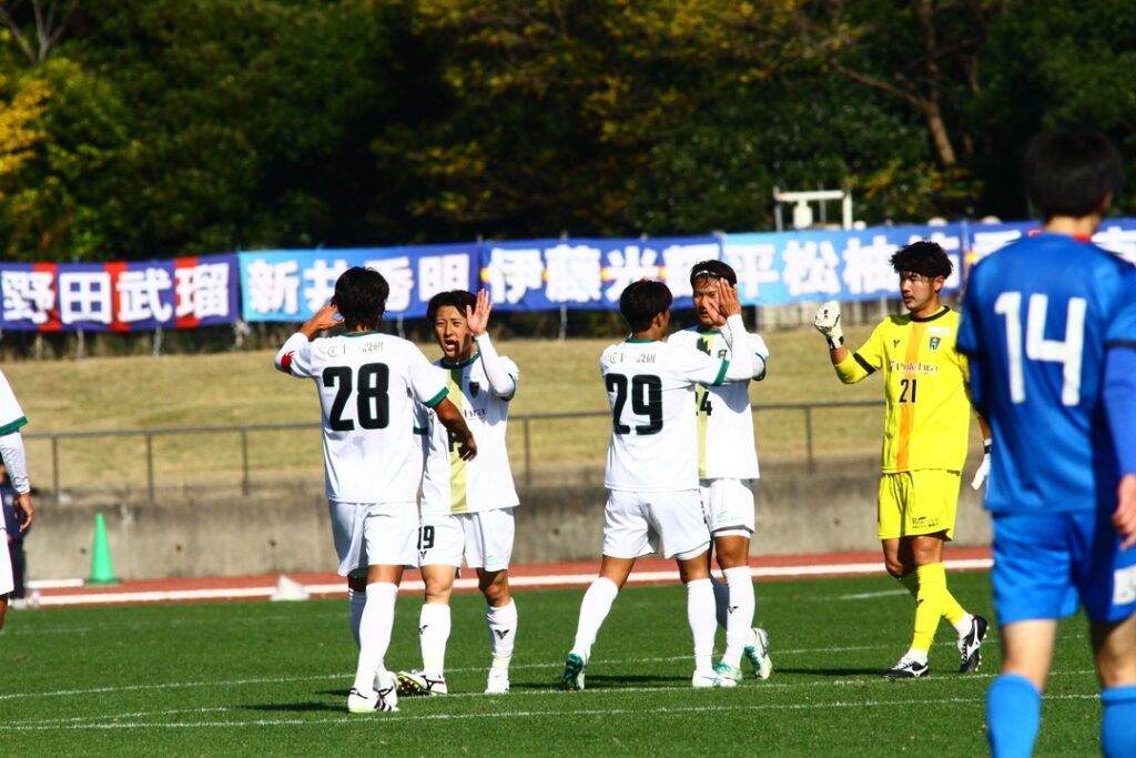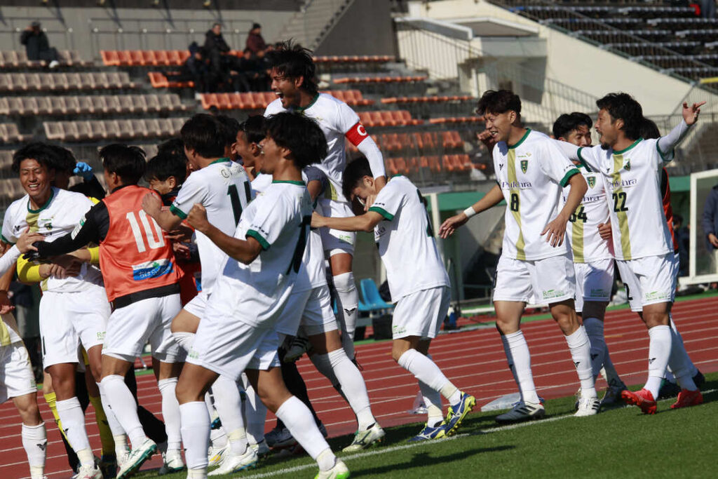 全国地域サッカーチャンピオンズリーグ2025 1次ラウンドをCグループ1位で突破し決勝ラウンドに進出したチームは、初戦に東京ユナイテッドFCとの対戦を迎える。前半から相手陣地へ積極的に仕掛けていき、良い入りからチャンスを広げていく。しかし、なかなか得点に結びつくことができず、少し押し込まれる場面があったもののしっかりと抑え0-0のまま終える。後半に入り、先制点を狙うチームは、後半5分にコーナーキックを獲得。No.19橋本のキックからNo.11一木がヘディングシュートで押し込み待望の先制点が生まれる!その後は相手の猛攻に耐える時間が続いたが、しっかりと守り切って試合終了。決勝ラウンドの大事な初戦で勝利を収めることができた。ご声援ありがとうございました!