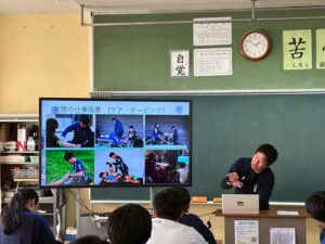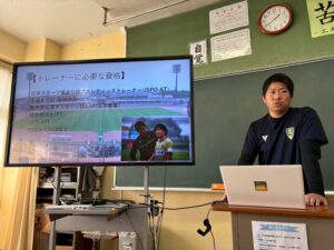 11月14日(金)、VONDS市原FCレディースの山口力矢トレーナーが、市川市立南行徳中学校を訪問し、『スポーツトレーナーの仕事について』生徒の皆様に向けて職業講話を実施いたしました。