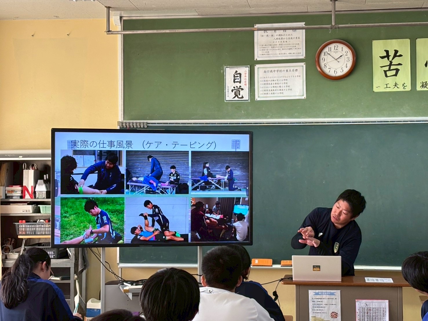 生徒の皆様、真剣な眼差しでお話を聞き、職業講話を通して、スポーツを支える仕事への理解を深めてくださいました。