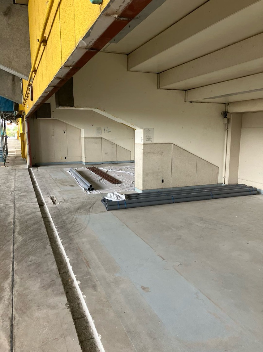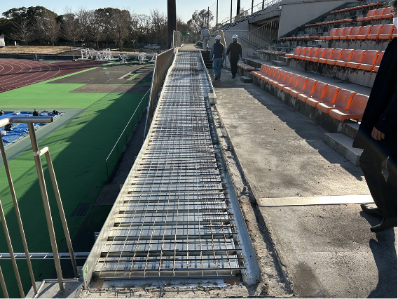 バリアフリーの一環として車いすを利用してお越しいただく方のため、スタジアム場外から観客席へと続くスロープが現在も建設中です。