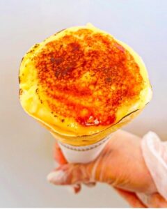 当店では惣菜クレープとデザートクレープでそれぞれ拘った生地を使用しております! 惣菜クレープはおかずの味を邪魔しない甘さ控えめのパリパリ食感⭐ デザートクレープはもちもち甘めの生地です! 炙りクレープはガスバーナーで炙ることにより香ばしさをプラスし香りでもクレープを楽しんで頂けるようお作りしてます♪是非ご賞味ください!