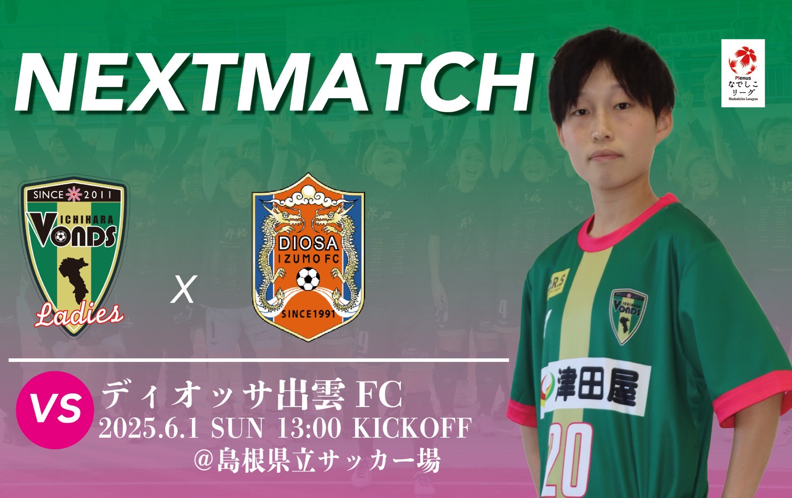 6/1(日)に開催予定の【2025プレナスなでしこリーグ2部 第13節 ディオッサ出雲FC戦】についてお知らせいたします。